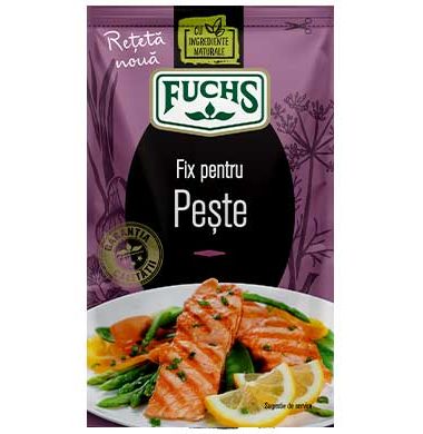 Fuchsův recept: Smíchejte koření v tomto sáčku s asi 8 lžícemi oleje a přidejte na předem nakrájenou rybu. Rybu vložte do pánve se 100 ml vody a poté vložte pánev do předehřáté trouby na 180 stupňů asi na 15-20 minut. Netto množství: 25 g